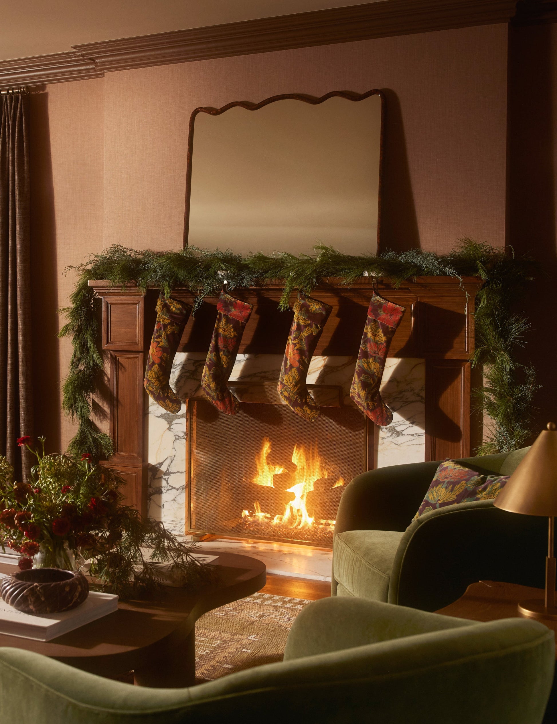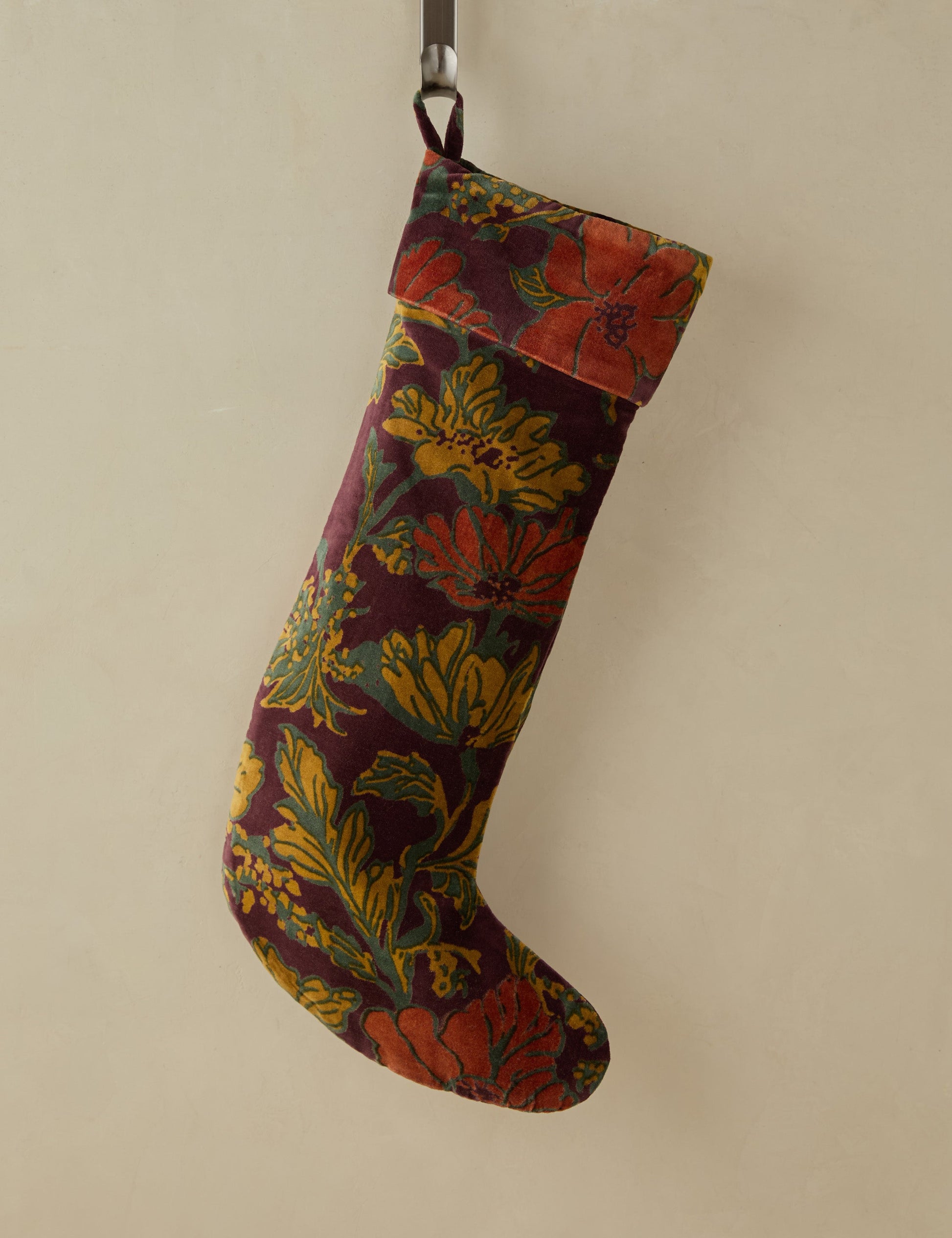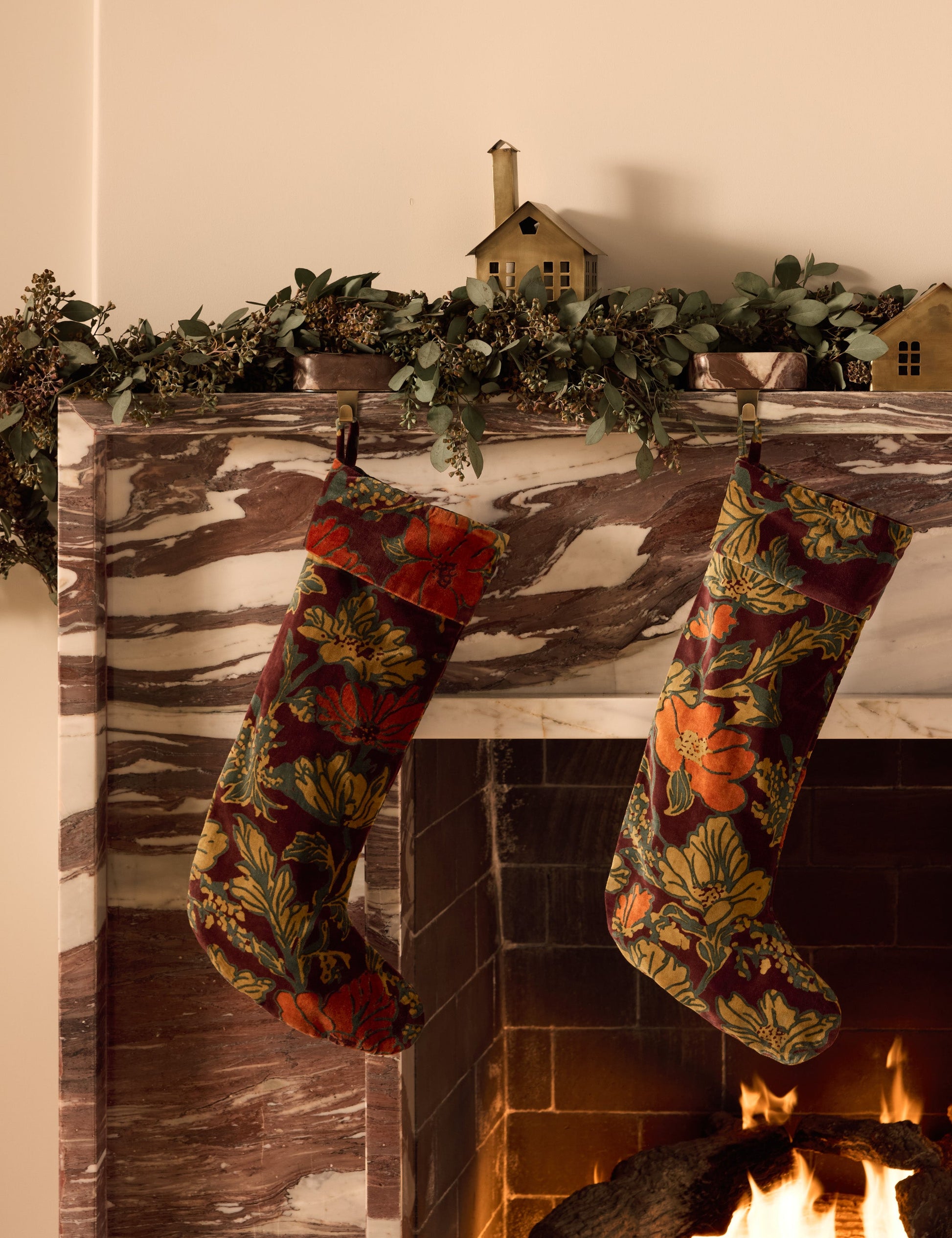 La chaussette Agnetha allie des motifs floraux audacieux à un velours somptueux pour une ambiance chaleureuse et raffinée. Dotée d'une boucle pour une suspension facile, elle apporte une touche de charme intemporel à votre cheminée ou à votre rampe d'escalier.
