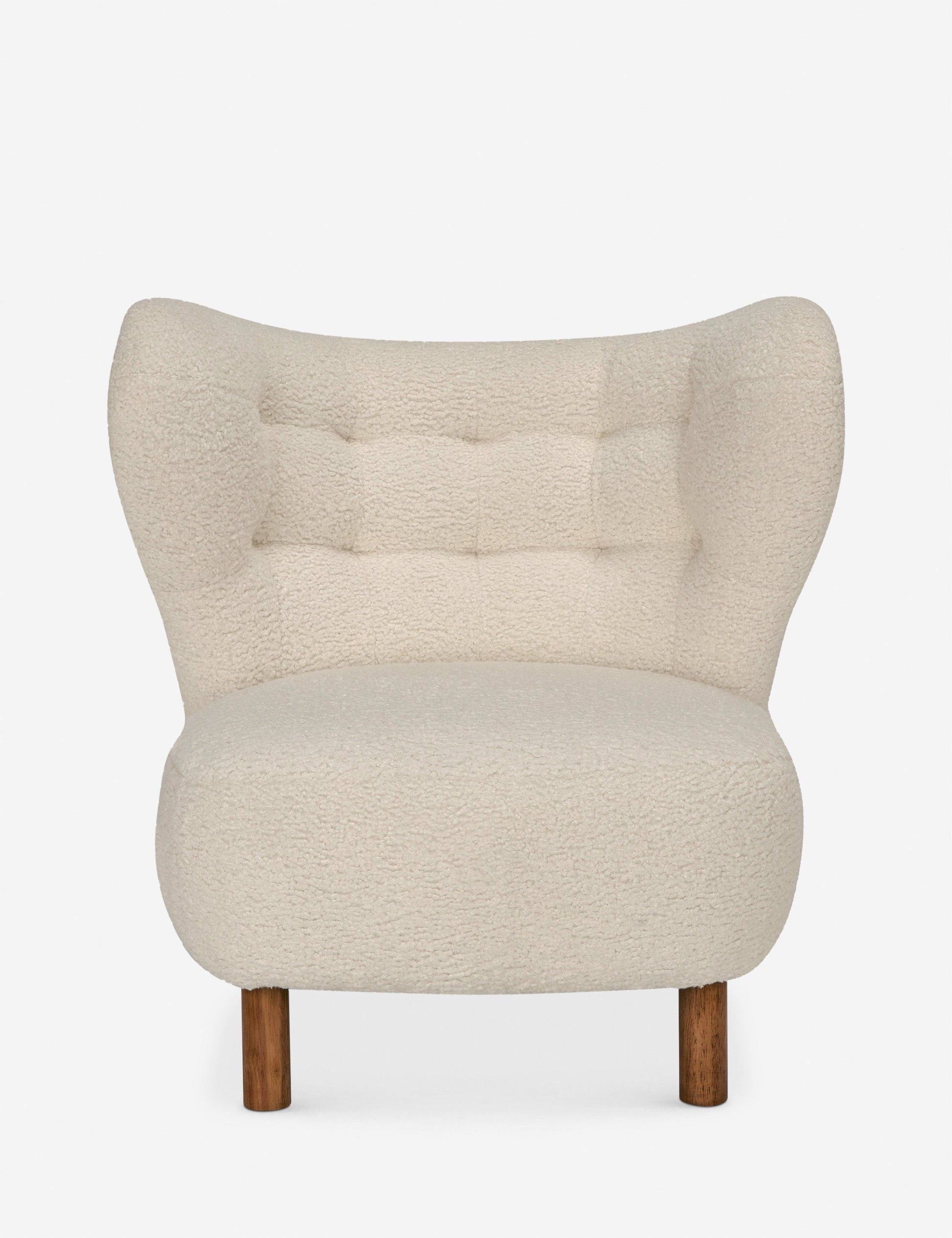 Des courbes douces et une texture moelleuse confèrent au fauteuil Bechet son charme accueillant. L'assise ajustée et le dossier sculpté sont recouverts d'un bouclé crème, posés sur des pieds en bois chaleureux pour un contraste saisissant. Ce fauteuil d'appoint chic apporte confort et style à votre salon, coin lecture ou coin chambre.
