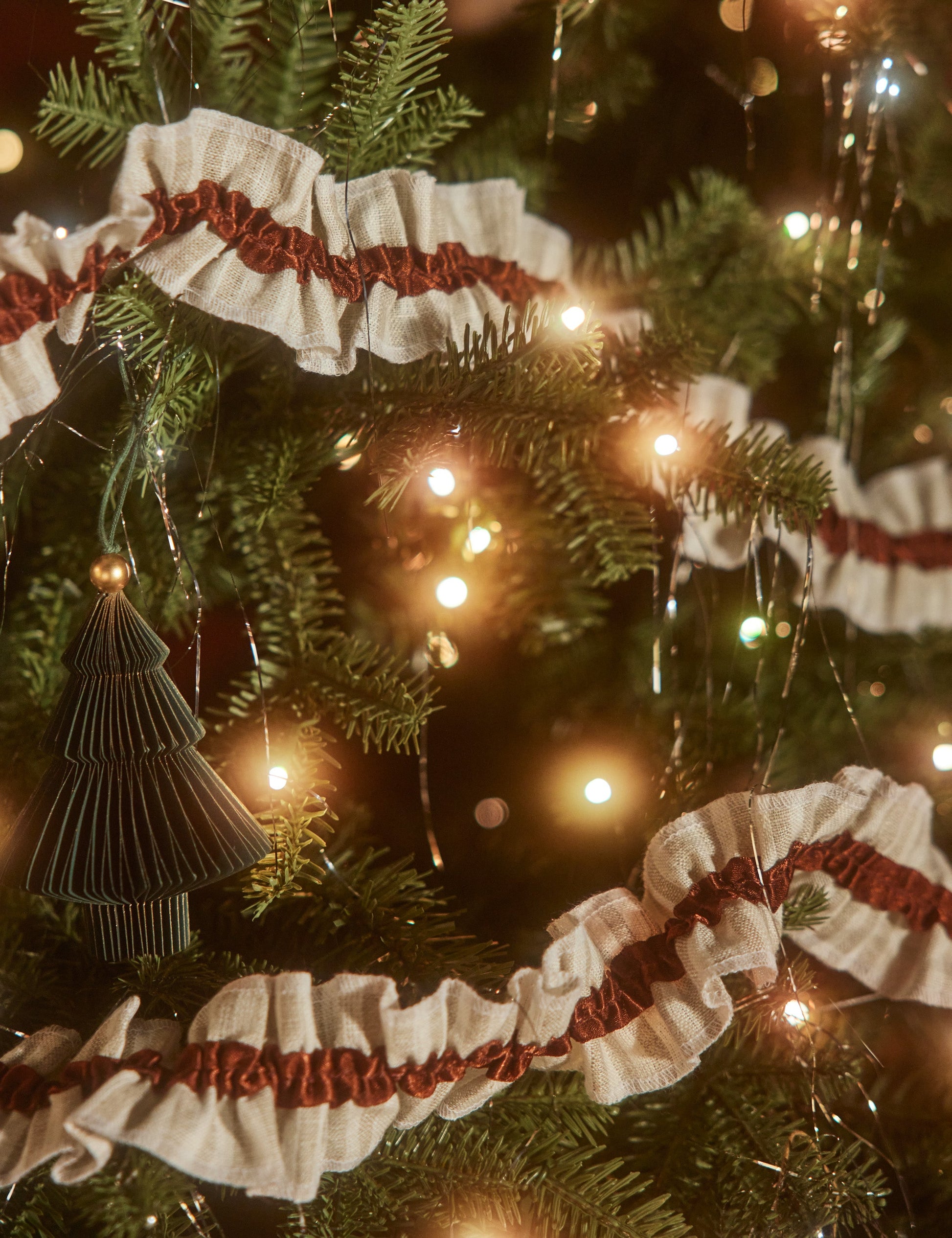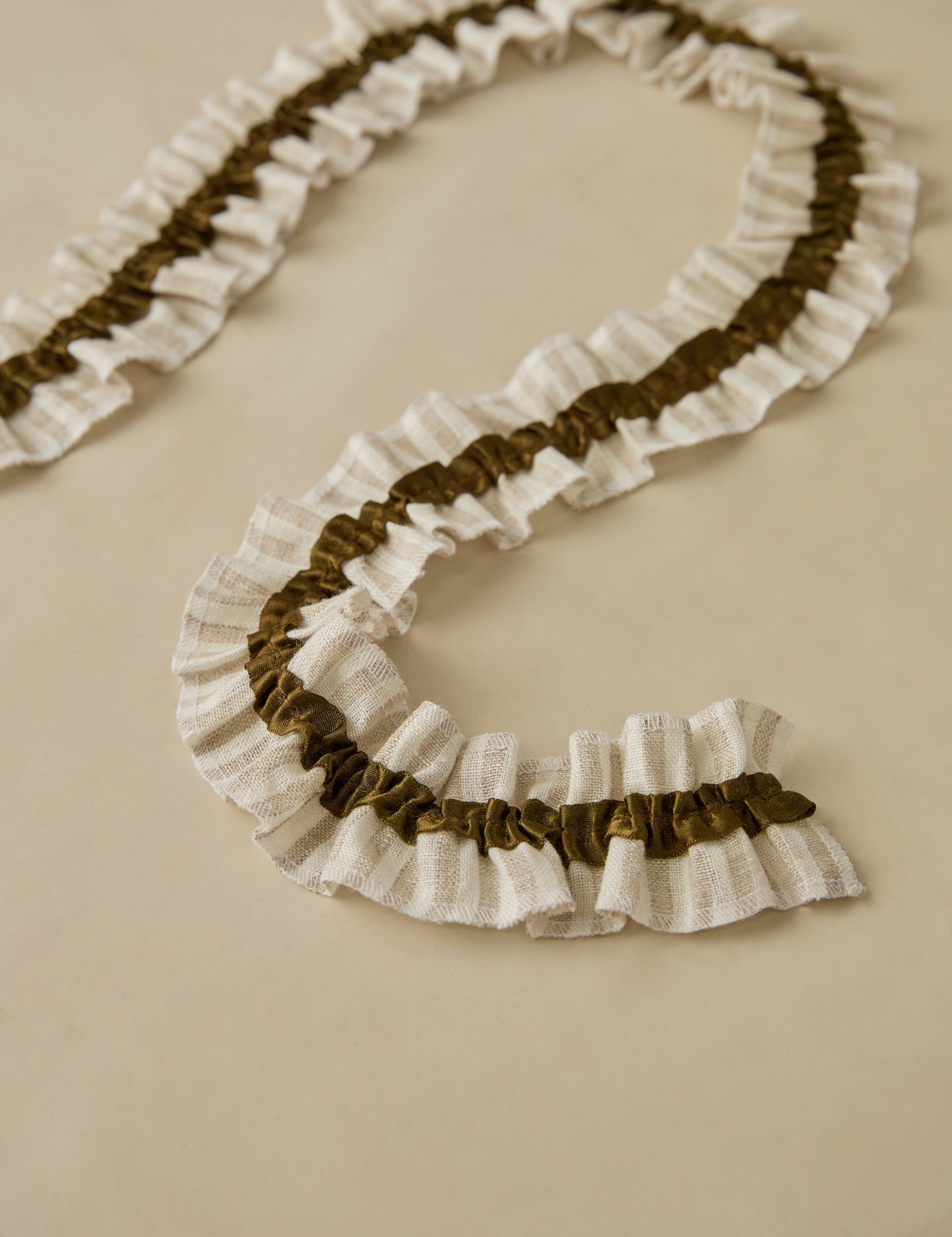 Variation volantée d'une bordure traditionnelle, cette guirlande en satin de lin doux apporte une touche festive à la fois ludique et raffinée. Accrochez-la sur une rampe d'escalier, un manteau de cheminée ou un sapin pour apporter texture et charme.