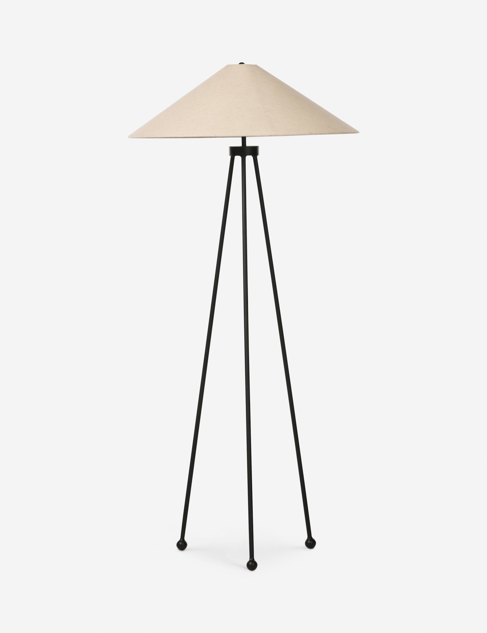 Le lampadaire Colbeck arbore une silhouette trépied au design avant-gardiste avec ses pieds fins en fer. Sa finition noire contraste subtilement avec l'abat-jour beige clair. Équilibré et léger, ce lampadaire est parfait pour éclairer un coin lecture ou mettre en valeur un salon.