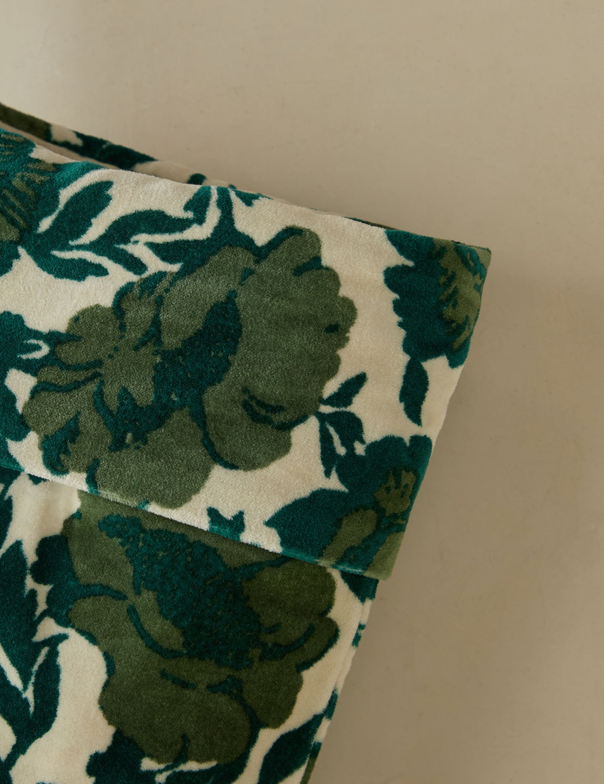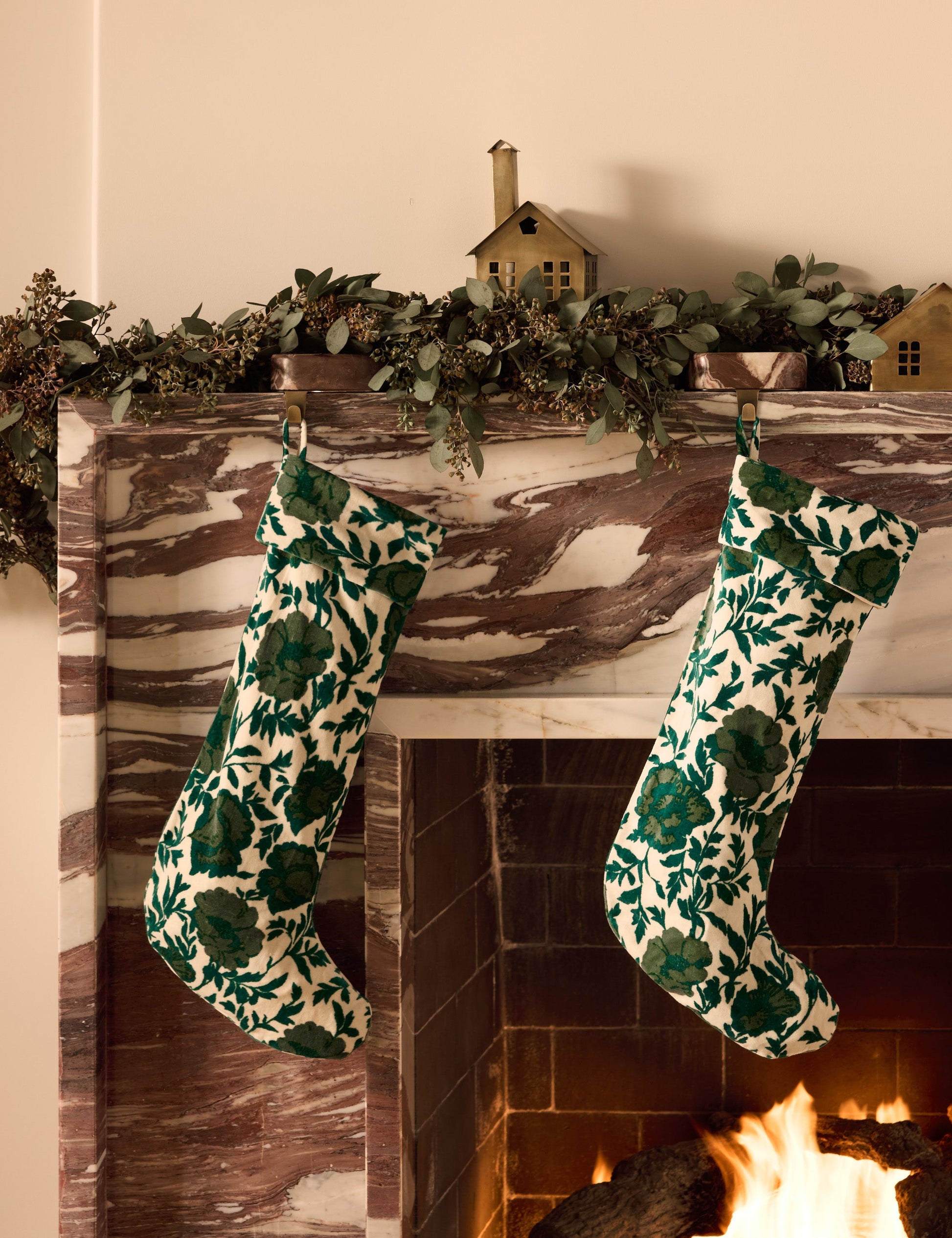 Des fleurs verdoyantes sur un velours doux confèrent à la chaussette Corabel un charme frais et intemporel. Accrochée à votre cheminée ou à votre rampe d'escalier, cette pièce apportera une touche de motif intemporel à votre décoration de Noël.