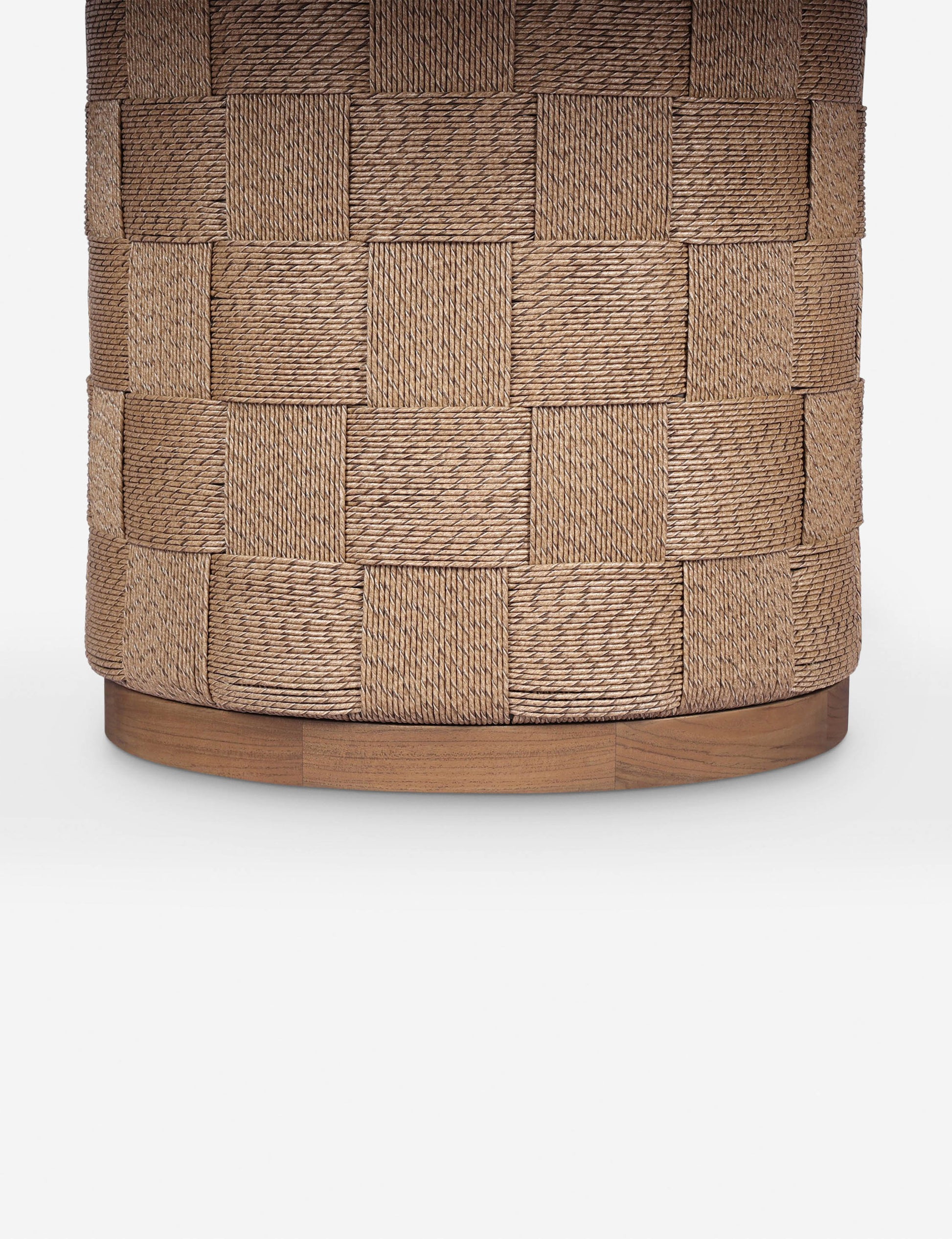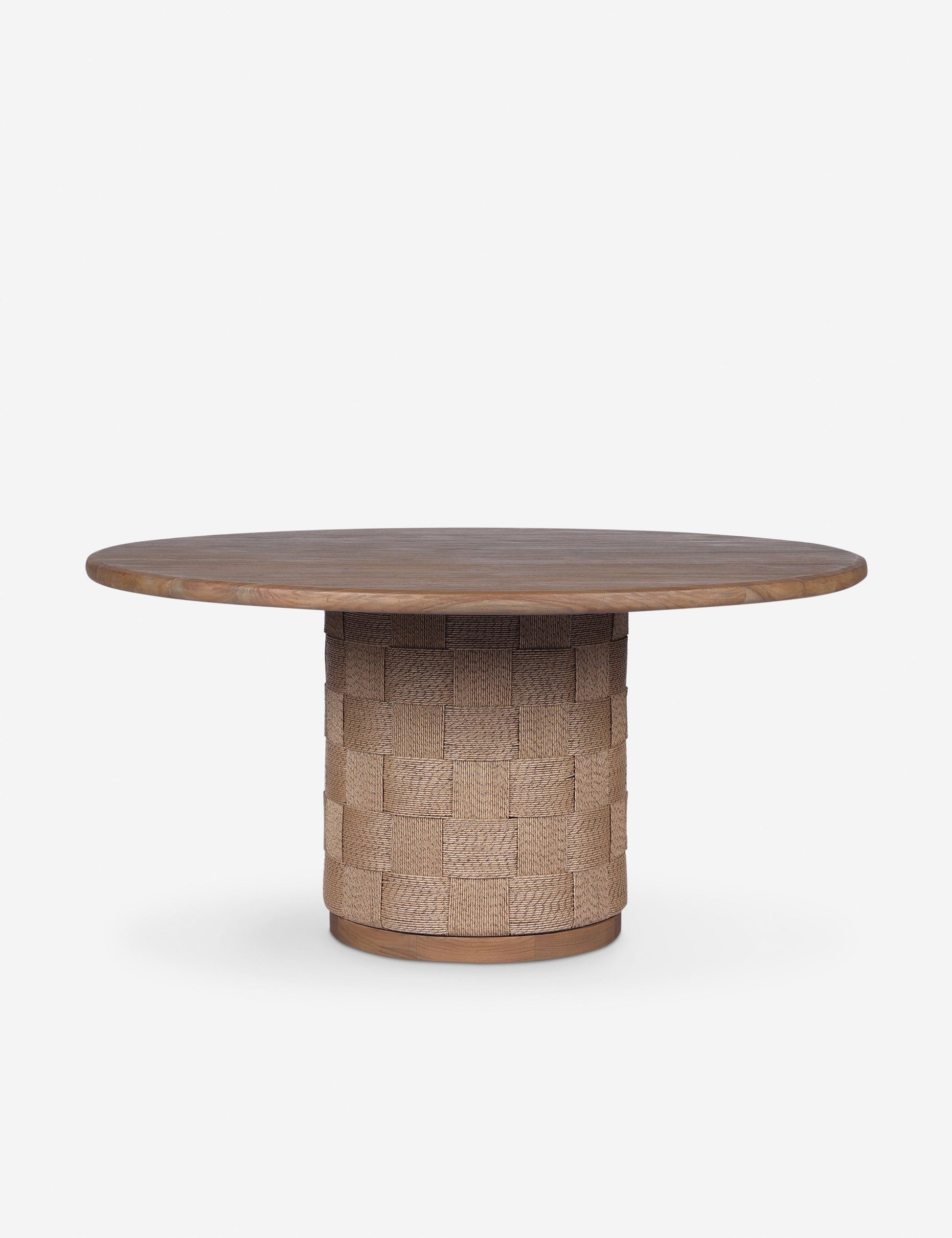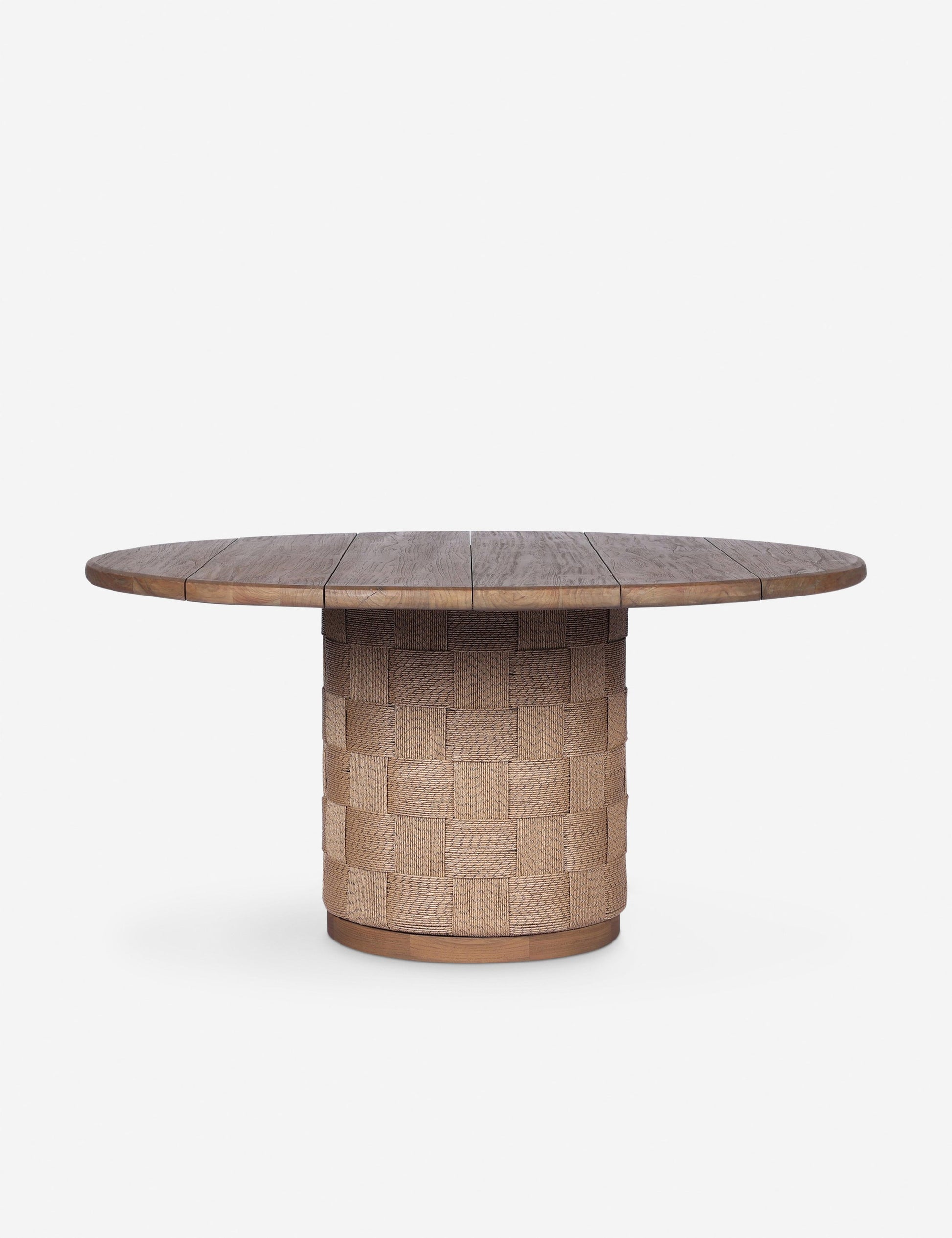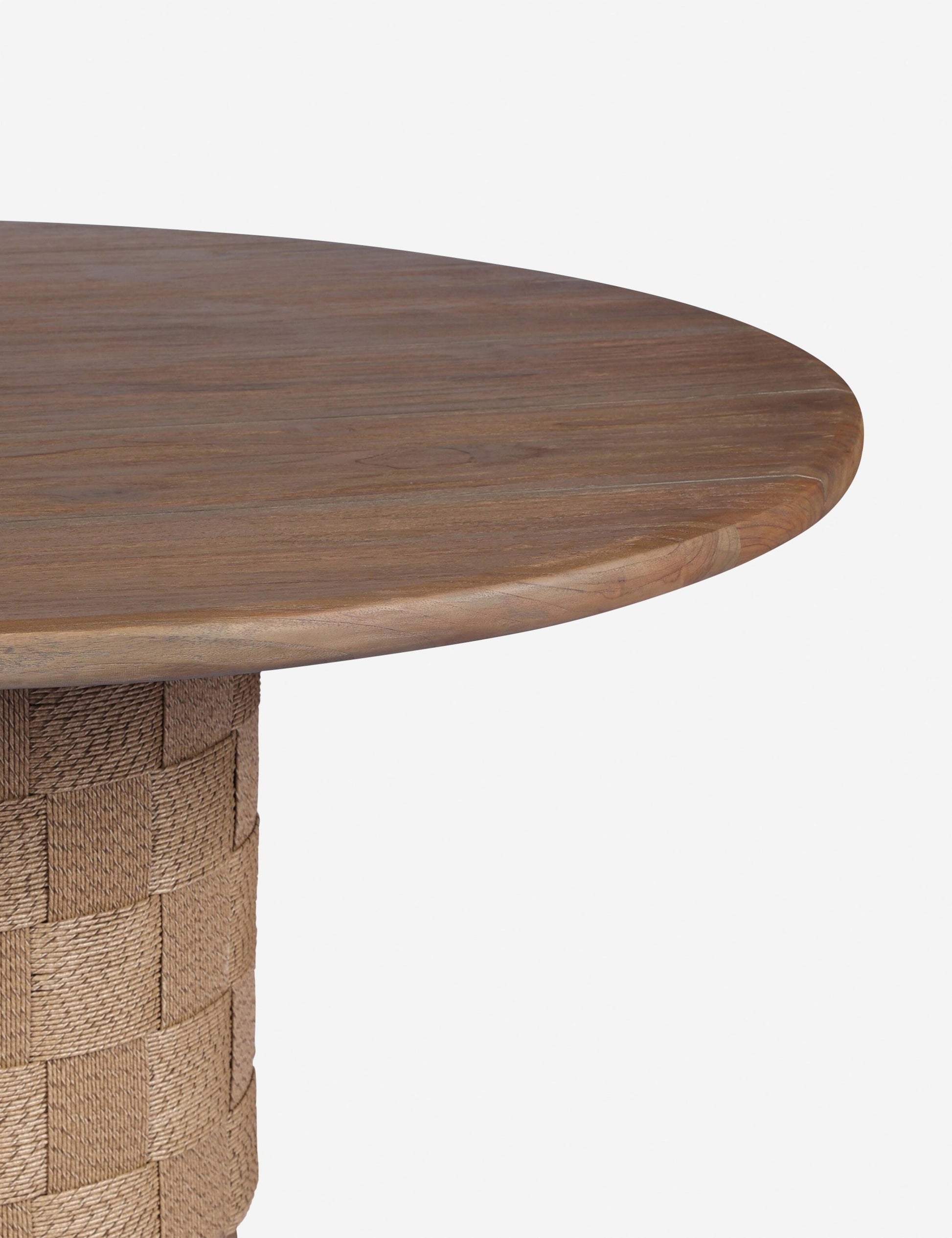 La table à manger Corsica offre une texture accueillante pour les repas en plein air. Un piètement en osier tressé à motif de caissons soutient un plateau en teck encastré, équilibrant l'équilibre avec une géométrie douce. Cette table ronde deviendra la pièce maîtresse d'un espace repas extérieur décontracté.