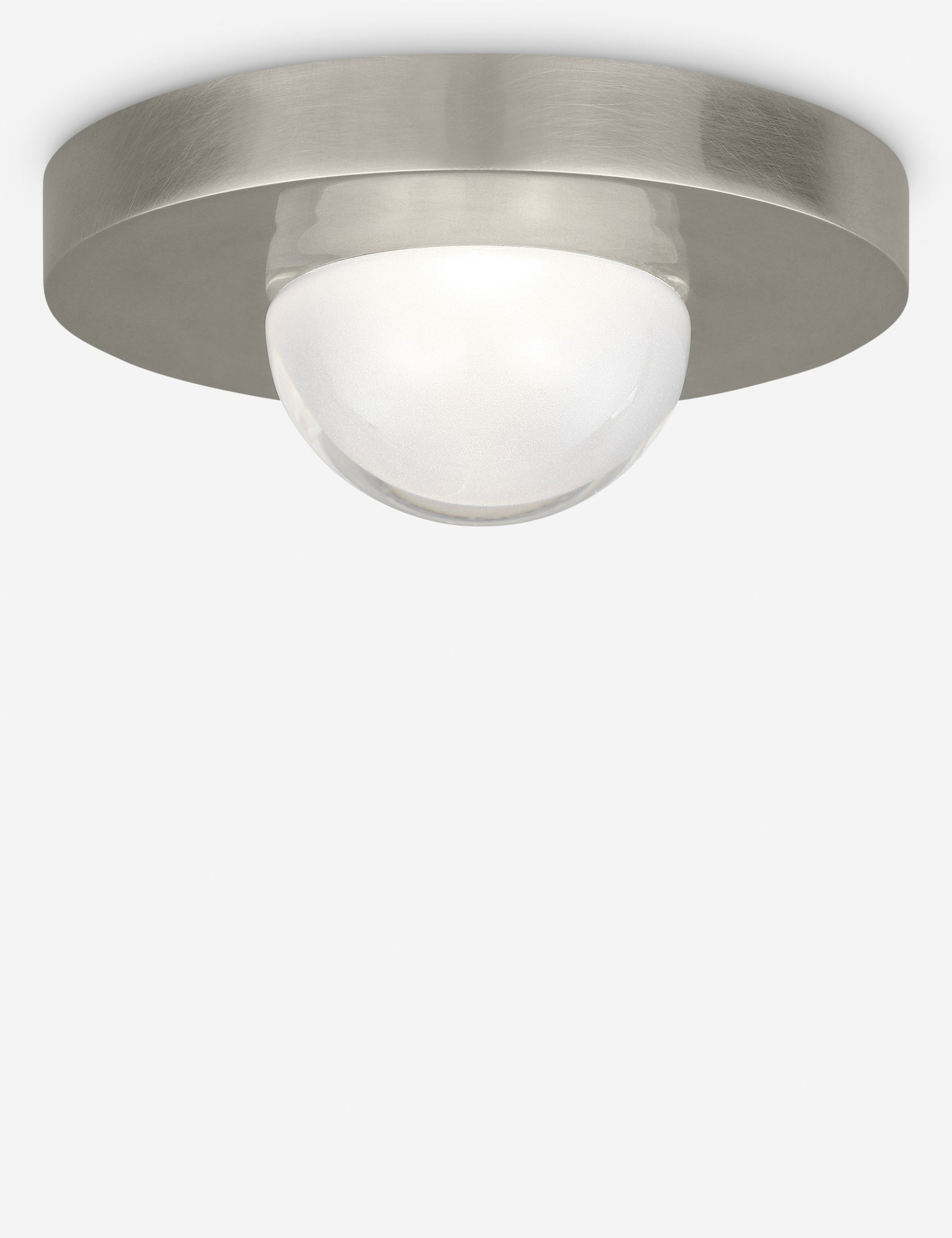 Kelly Wearstler possède un sens intuitif pour trouver l'harmonie par le contraste, créant des espaces aux multiples facettes et des éléments raffinés pour la maison. Le mini-plafonnier Ebell est doté d'un dôme en verre encastré dans un élégant cadre métallique. Son éclairage LED intégré et sa conception rechargeable diffusent une lumière chaleureuse et concentrée, pour une touche de modernité à intégrer partout.