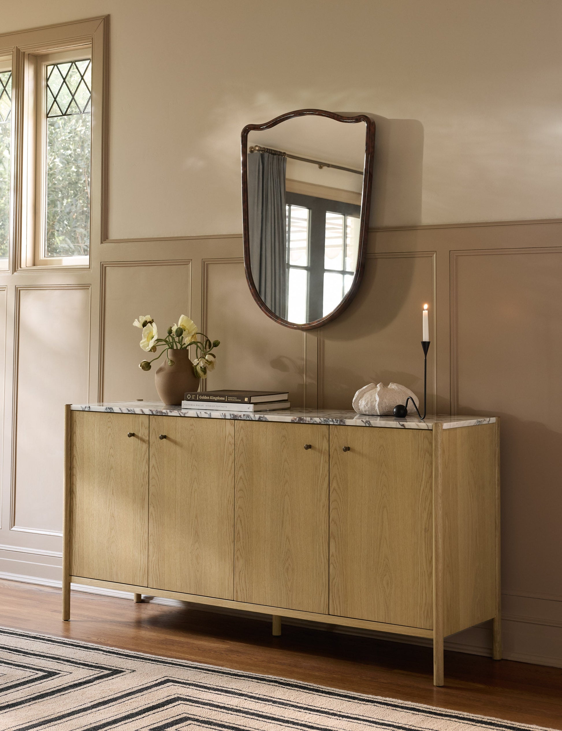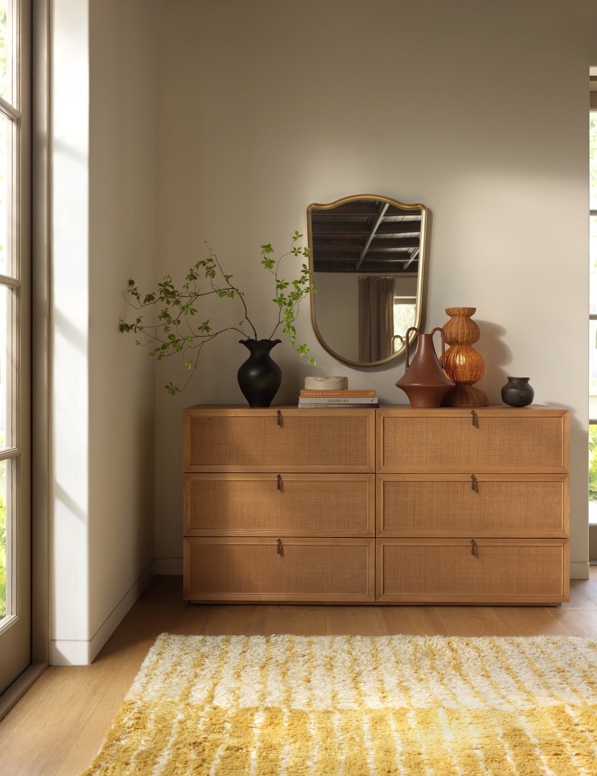 Notre miroir Elda apporte une touche de fraîcheur à l'élégance discrète. Ses contours subtils dessinent une silhouette majestueuse, aux lignes intemporelles qui s'intègrent harmonieusement à un design moderne. Un cadre fin souligne le miroir, offrant la touche d'élégance parfaite pour un look raffiné.
