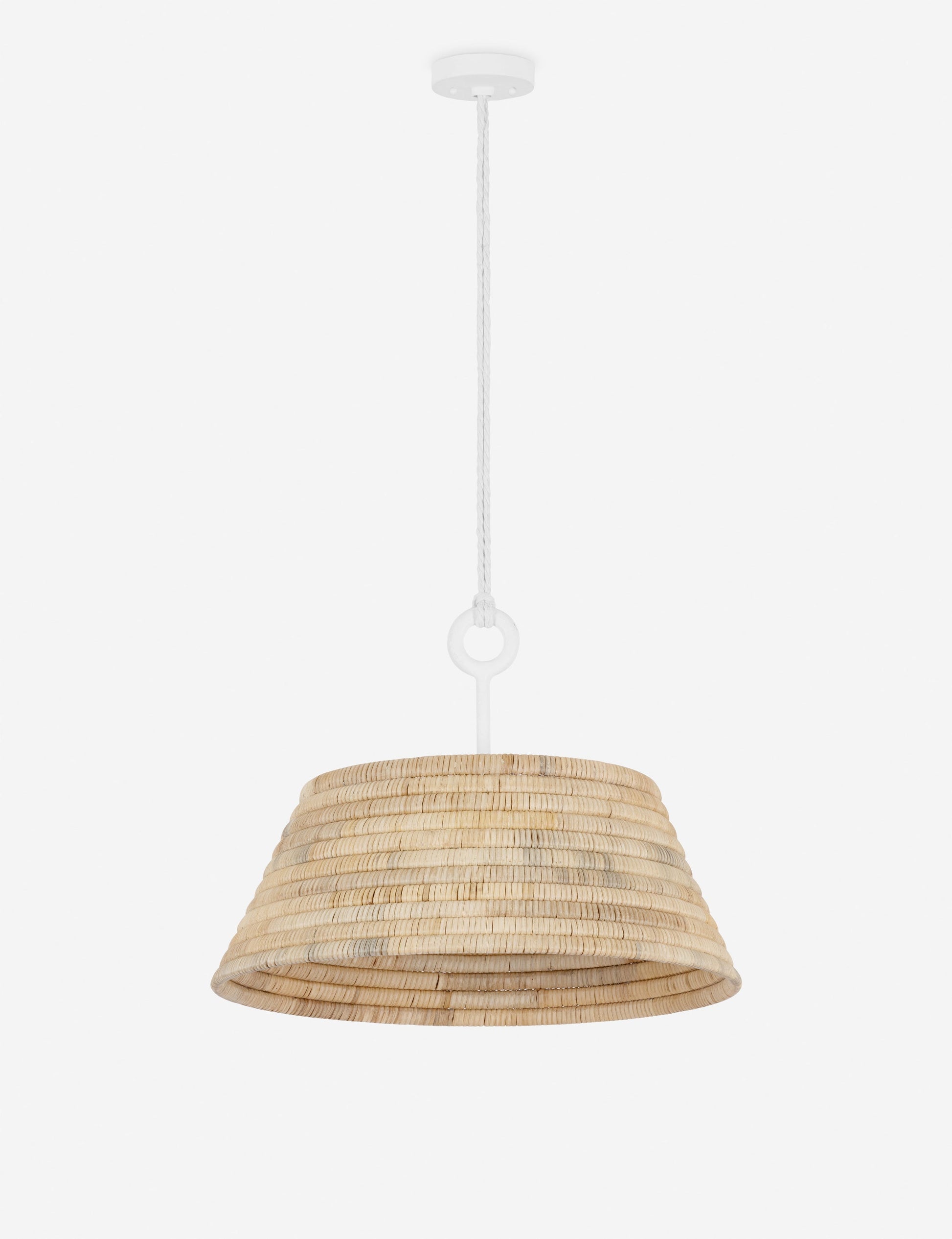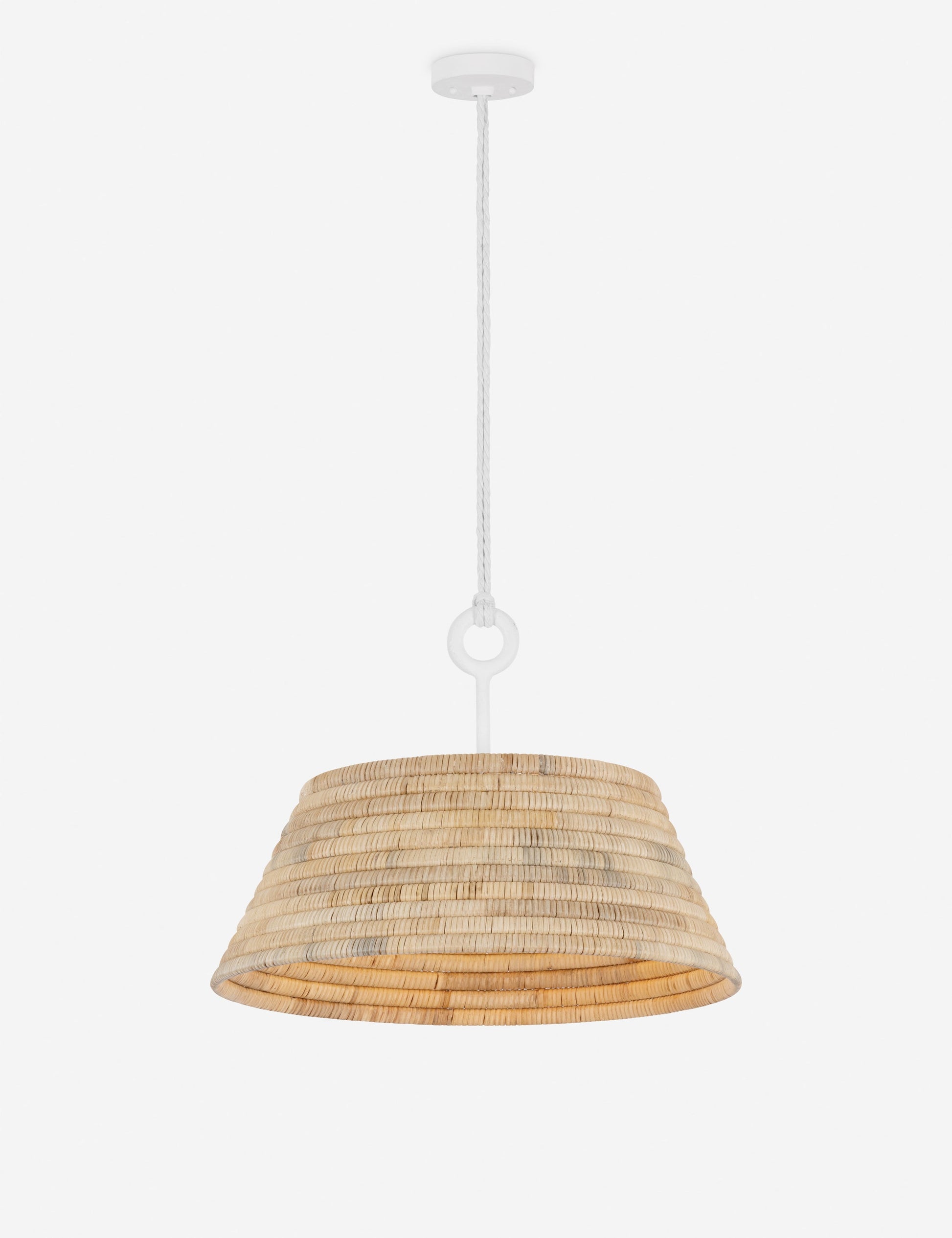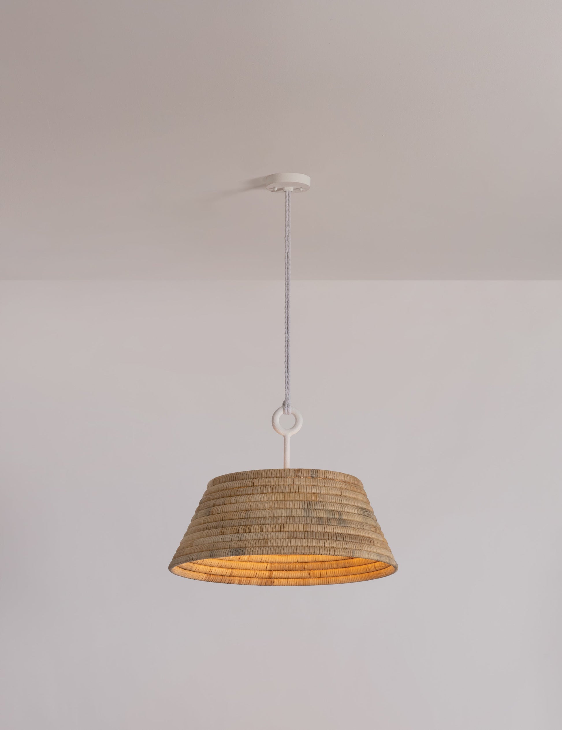 La suspension Farida allie texture tissée et forme affirmée. Un abat-jour tissé arrondi et des ferrures forgées créent un style rappelant les formes nautiques. Utilisez cette suspension pour ancrer une entrée ou apporter de la chaleur à une pièce haute de plafond.