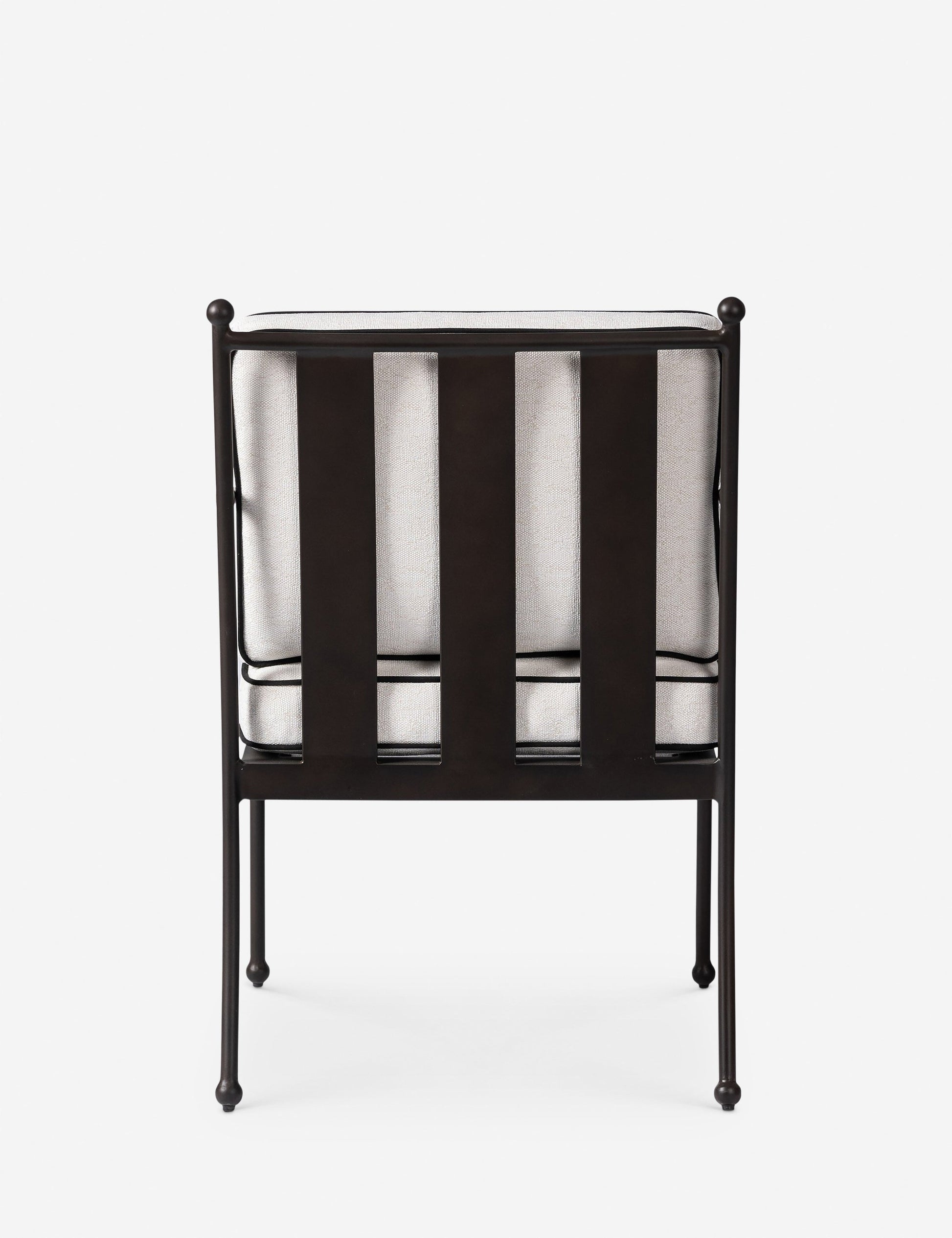 La chaise de salle à manger Gracen apporte une ligne épurée et un confort moelleux à votre table en plein air. Sa structure métallique élancée et ses lattes verticales dessinent une silhouette sur mesure, tandis que ses embouts subtils ajoutent un charme déco français. Avec ses accoudoirs élégants, c'est une assise raffinée conçue pour une ambiance élégante en plein air.