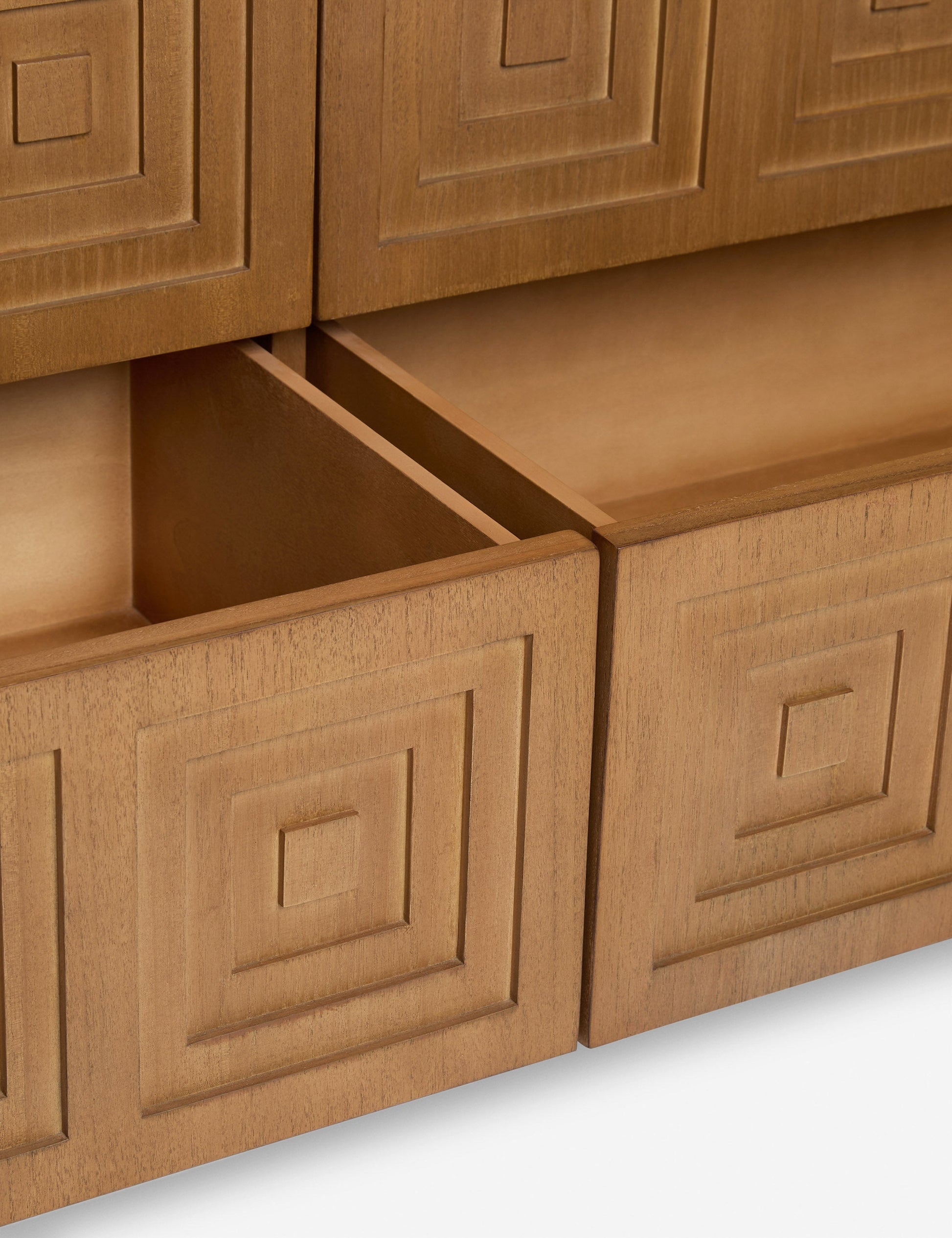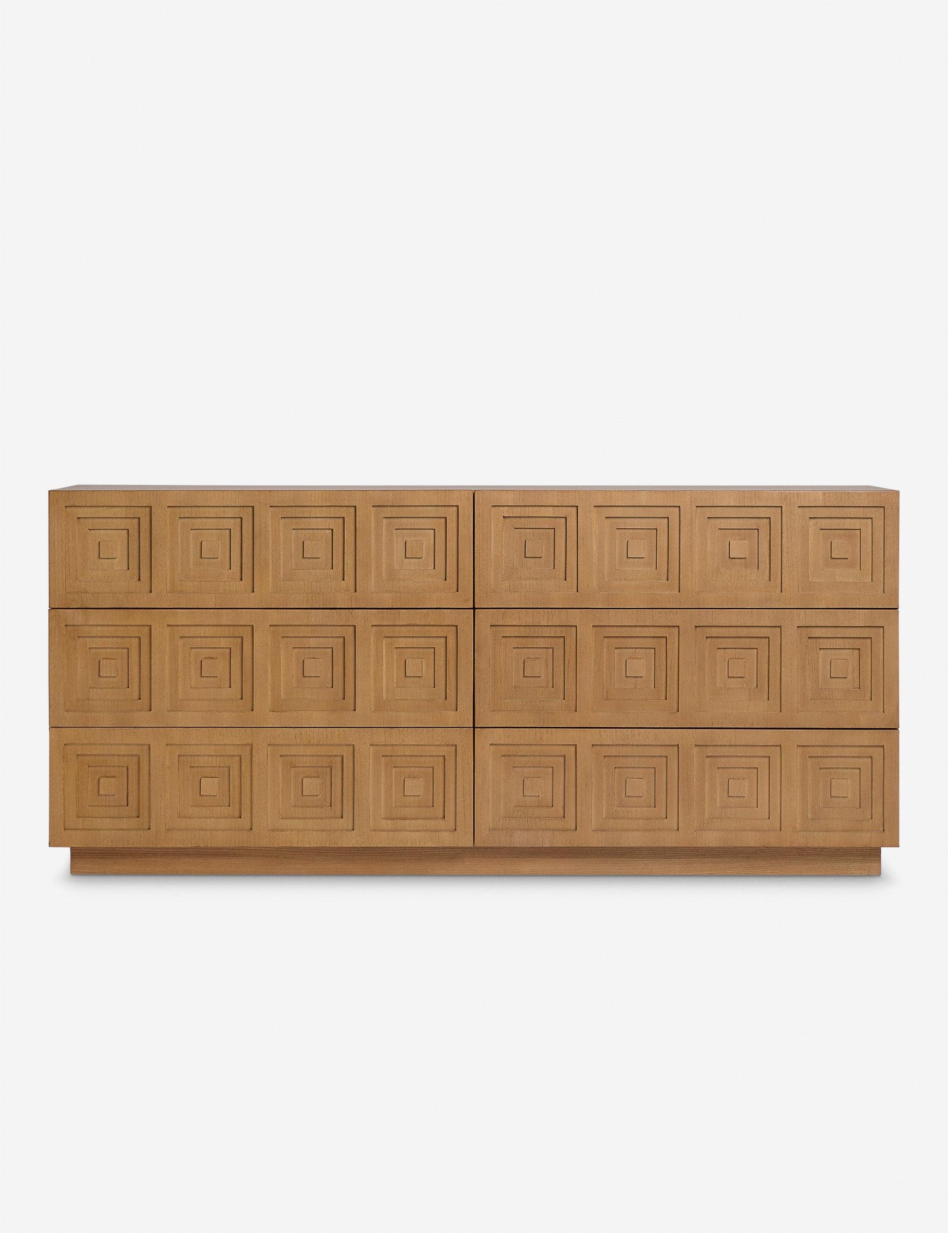 Rehaussez la texture de votre intérieur avec notre commode Hanson. Ce modèle en bois offre une belle dose de chaleur naturelle grâce à son grain et à sa grille dimensionnelle en relief, créant un profil dynamique pour un design moderne. Dotée de six tiroirs à loquet, elle allie style et fonctionnalité à votre chambre.