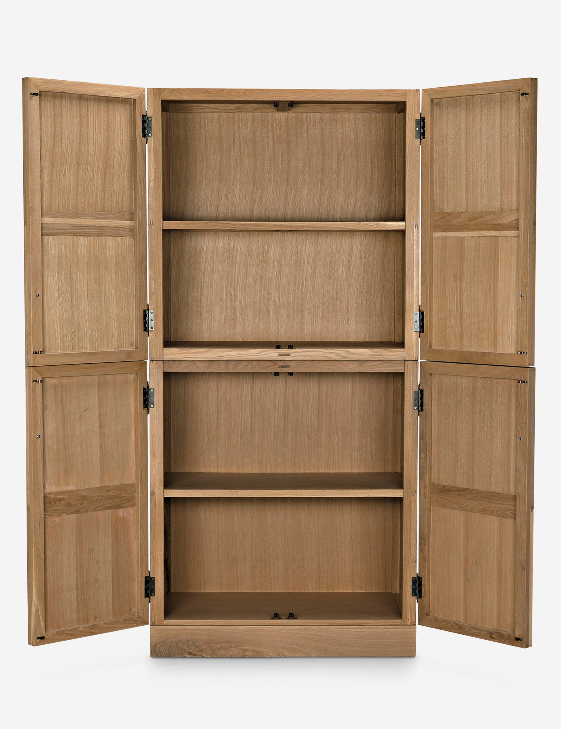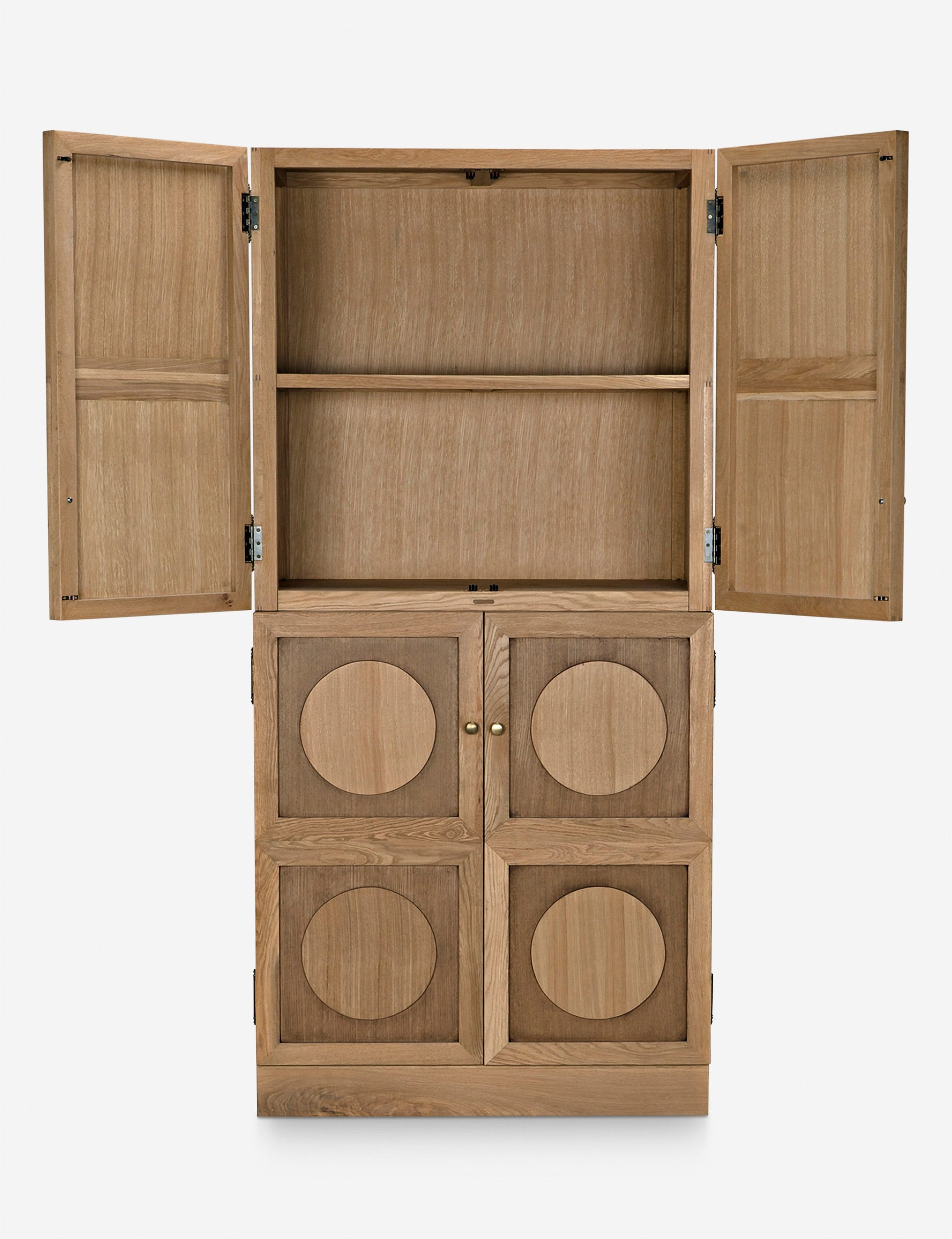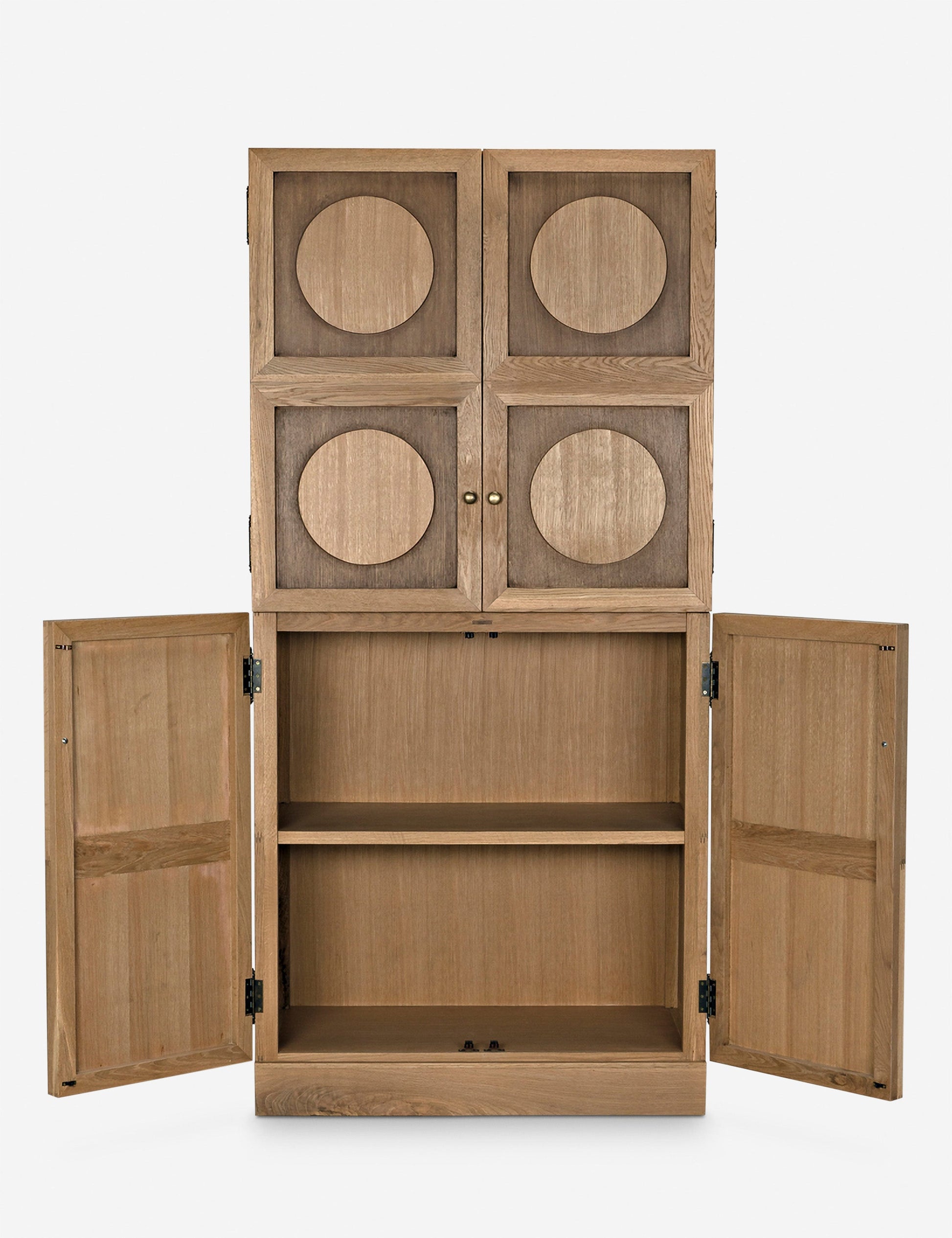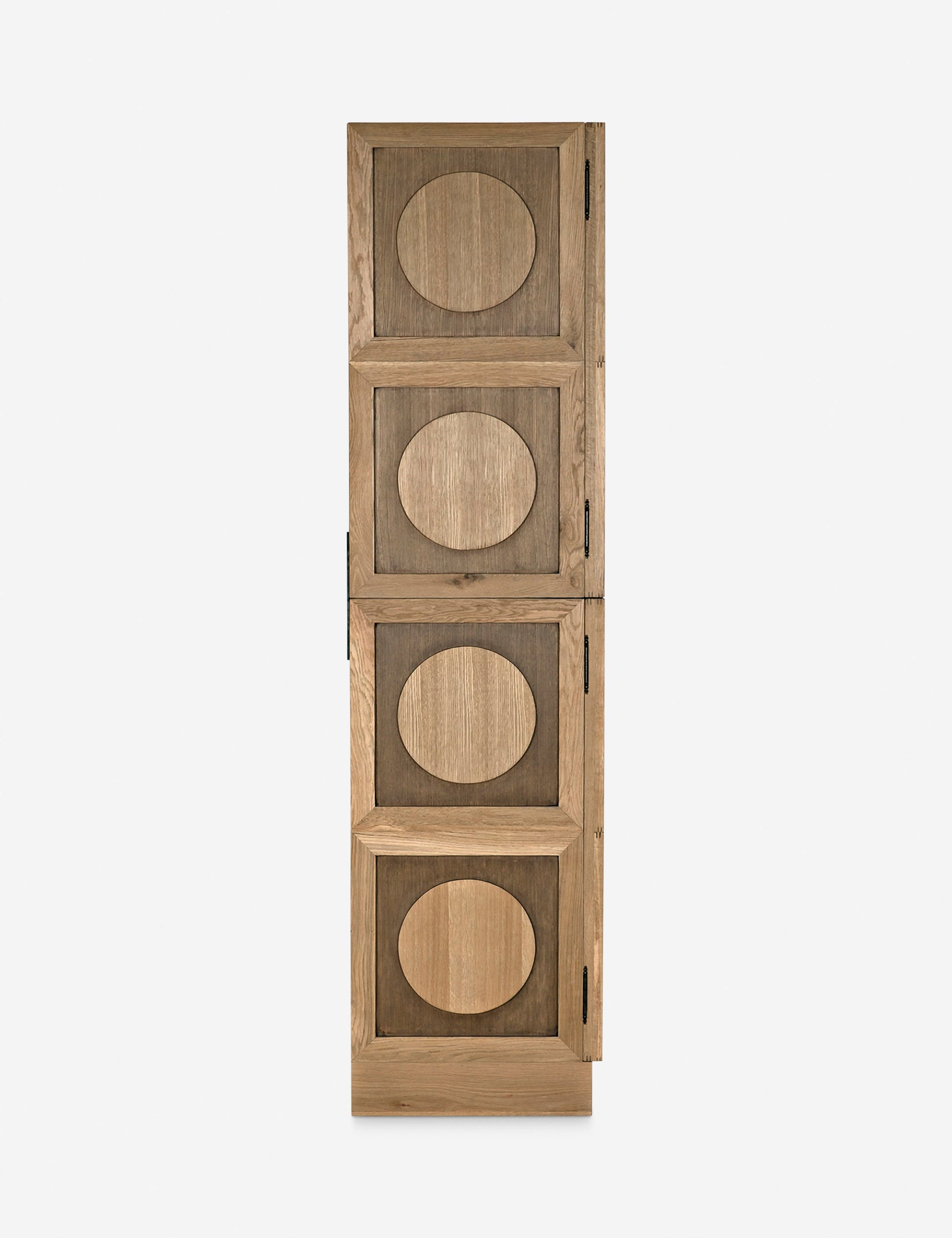 L'armoire Larose revisite l'artisanat traditionnel. Encadrée en chêne blanc et dotée de portes à panneaux circulaires encastrés, sa silhouette haute offre un vaste espace de rangement tout en s'affirmant avec élégance. Nous adorons cette armoire polyvalente, idéale pour ranger tous vos essentiels de salle à manger, votre linge de maison et bien plus encore.