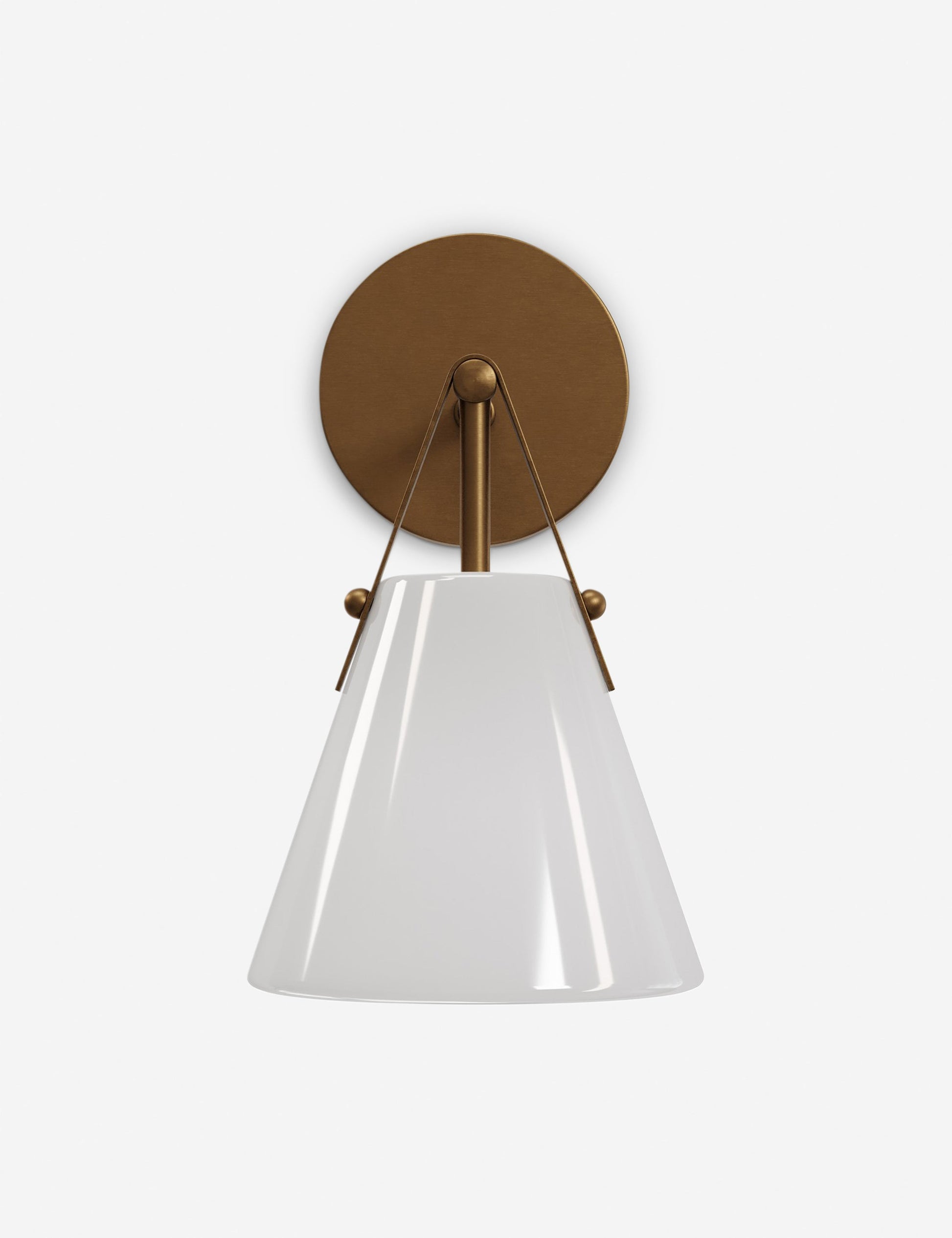 L'applique Salo se distingue par ses lignes épurées et ses détails raffinés. Son abat-jour en verre blanc est maintenu par d'élégantes sangles rappelant le harnachement équestre, pour une touche rustique. Cette applique s'intègre aussi bien dans une salle de bains classique que transitionnelle.