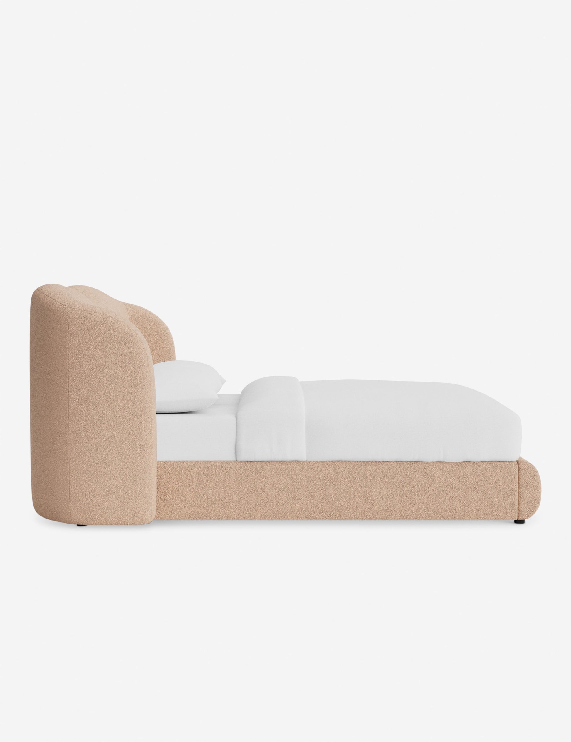 Shaw allie un design raffiné à un confort moelleux. La tête de lit ondulée et le cadre sur mesure créent une touche artistique, parfaite pour une chambre moderne. Un large choix de revêtements sur mesure vous permet d'adapter le meuble à votre espace.
