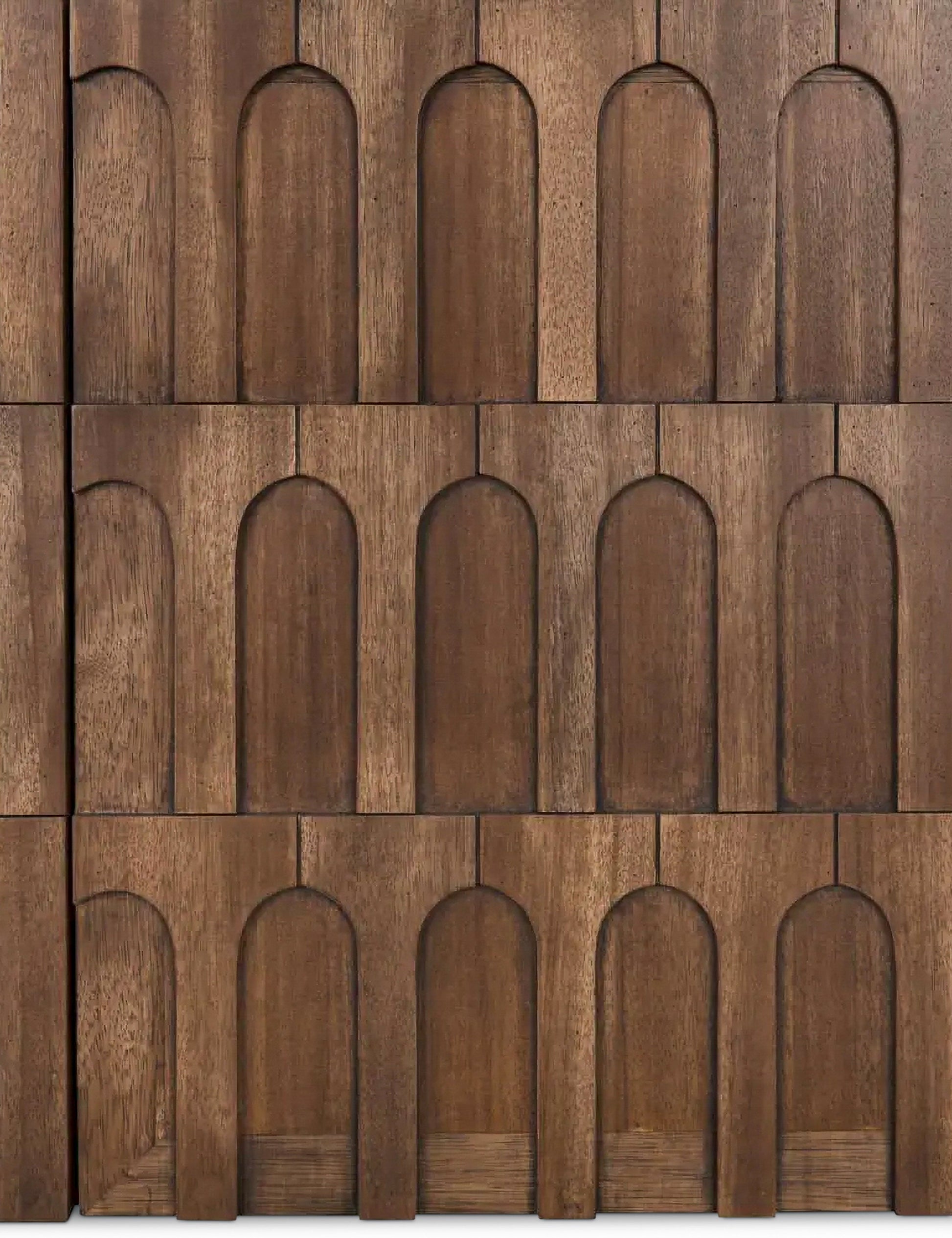 Affichant une texture et une forme remarquables, le buffet Stader apporte une touche architecturale à votre espace de rangement. Avec sa riche finition noyer, sa façade à motifs crée un rythme visuel tout en dissimulant de généreuses étagères. Ce buffet est un élément de décoration raffiné pour la salle à manger comme pour le salon.