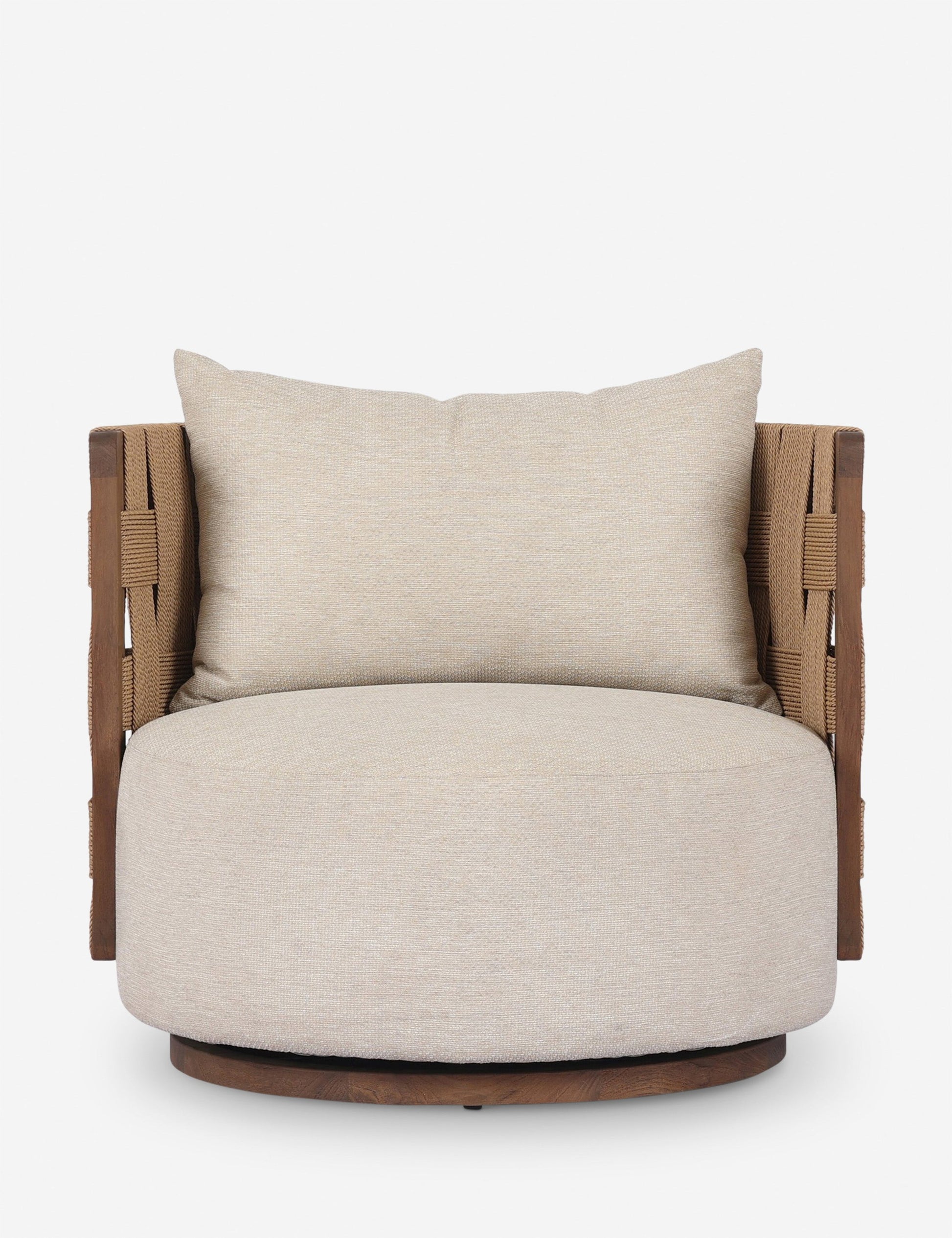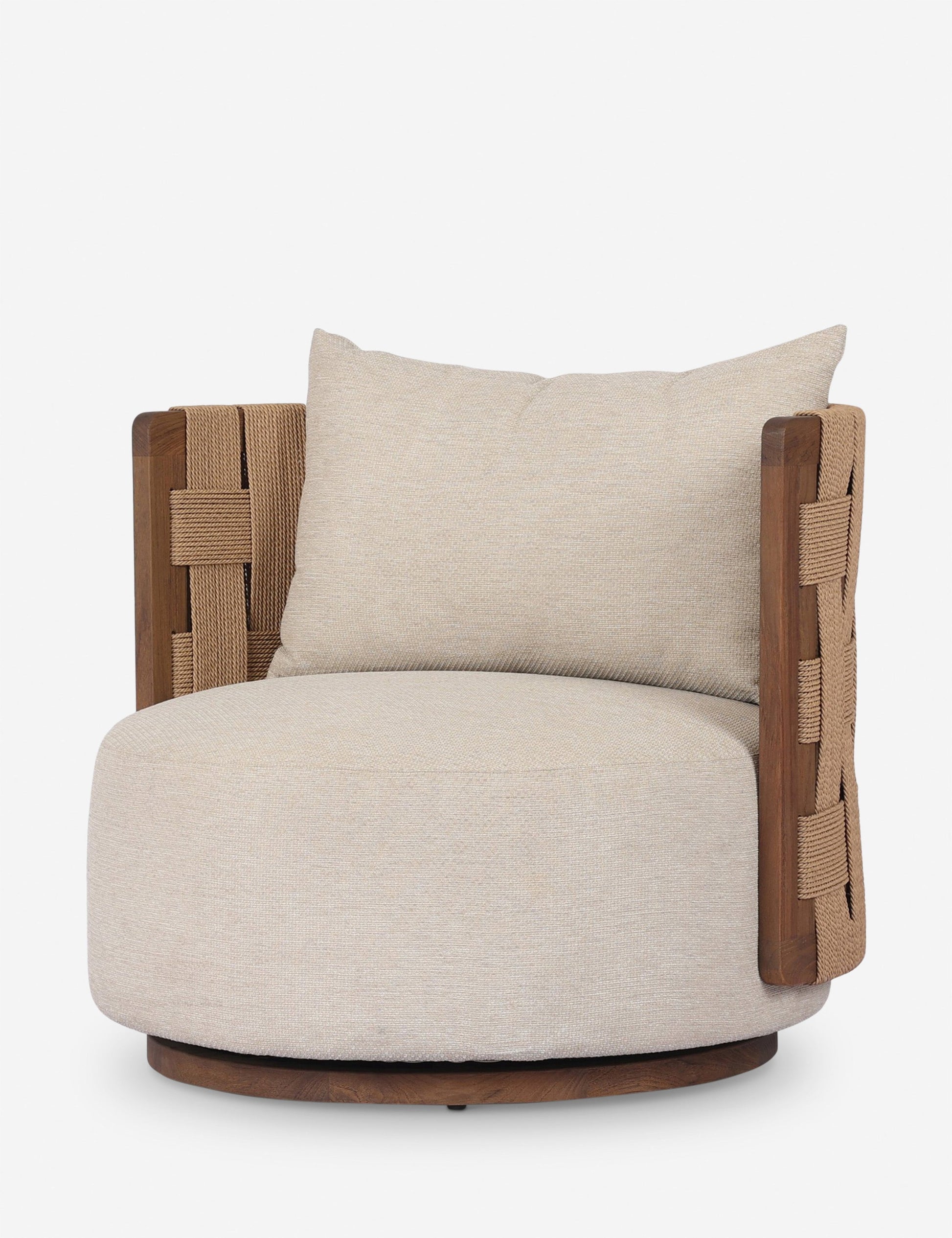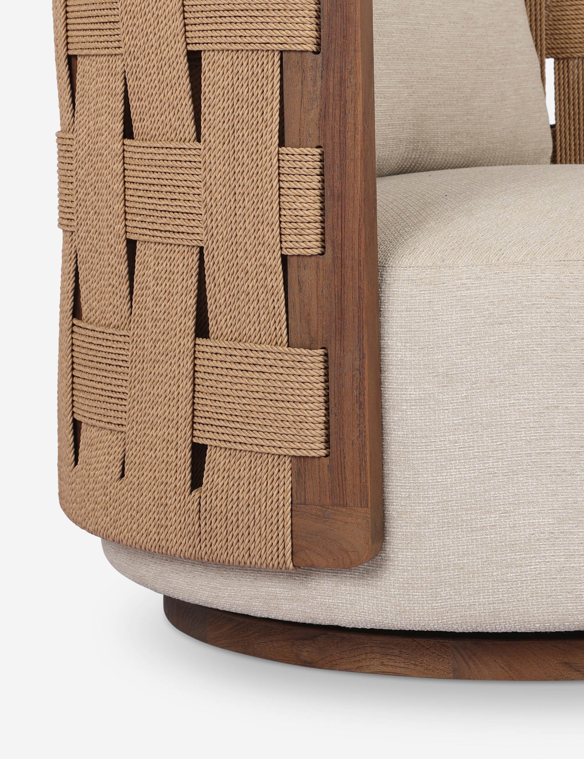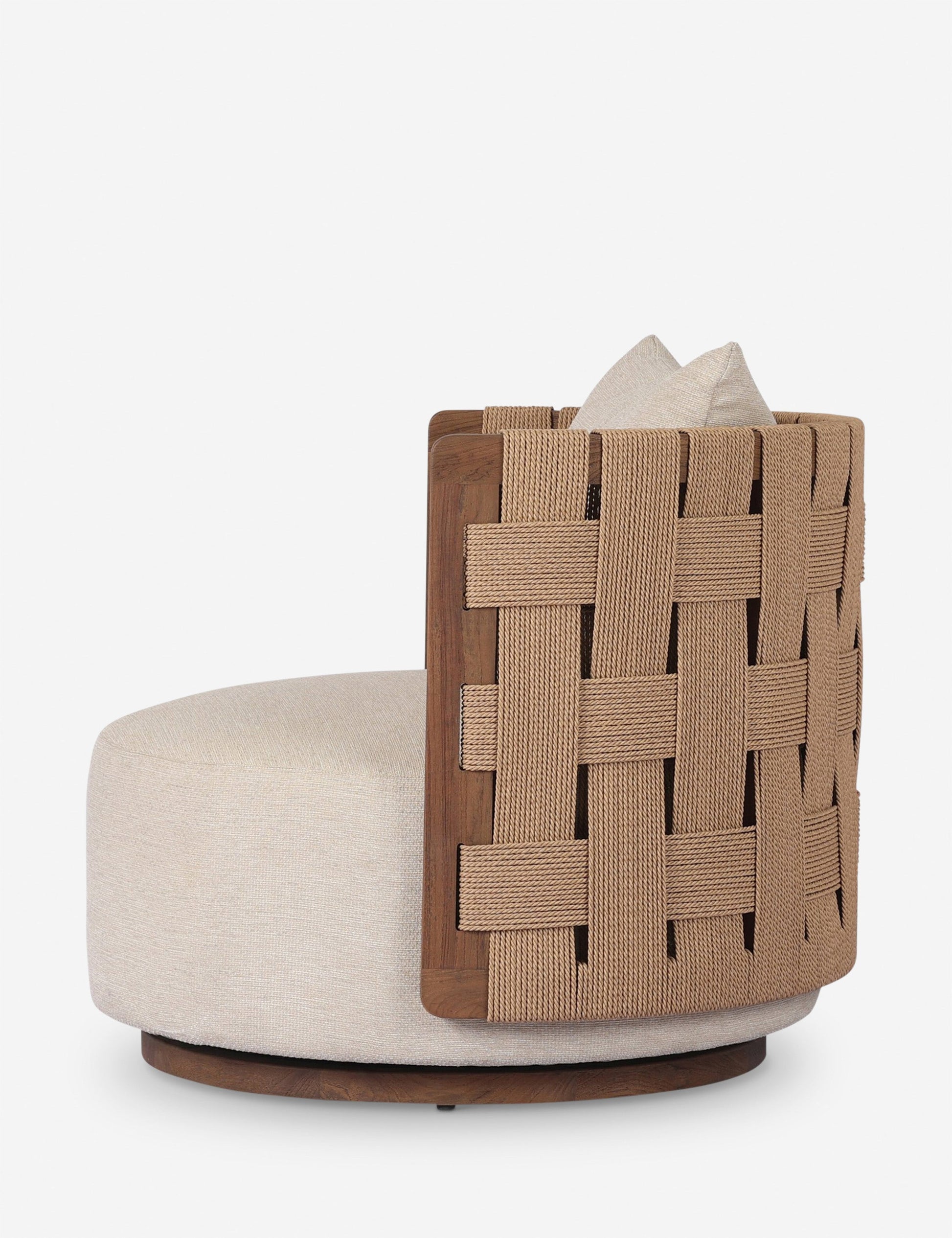Le fauteuil d'appoint Tema est une pièce sculpturale qui s'intègre parfaitement à un style frais. Sa structure en teck présente un tissage surdimensionné pour plus de texture, enveloppant une assise et un dossier rembourrés. Une base pivotante dissimulée complète ce design à la fois décontracté et élégant.