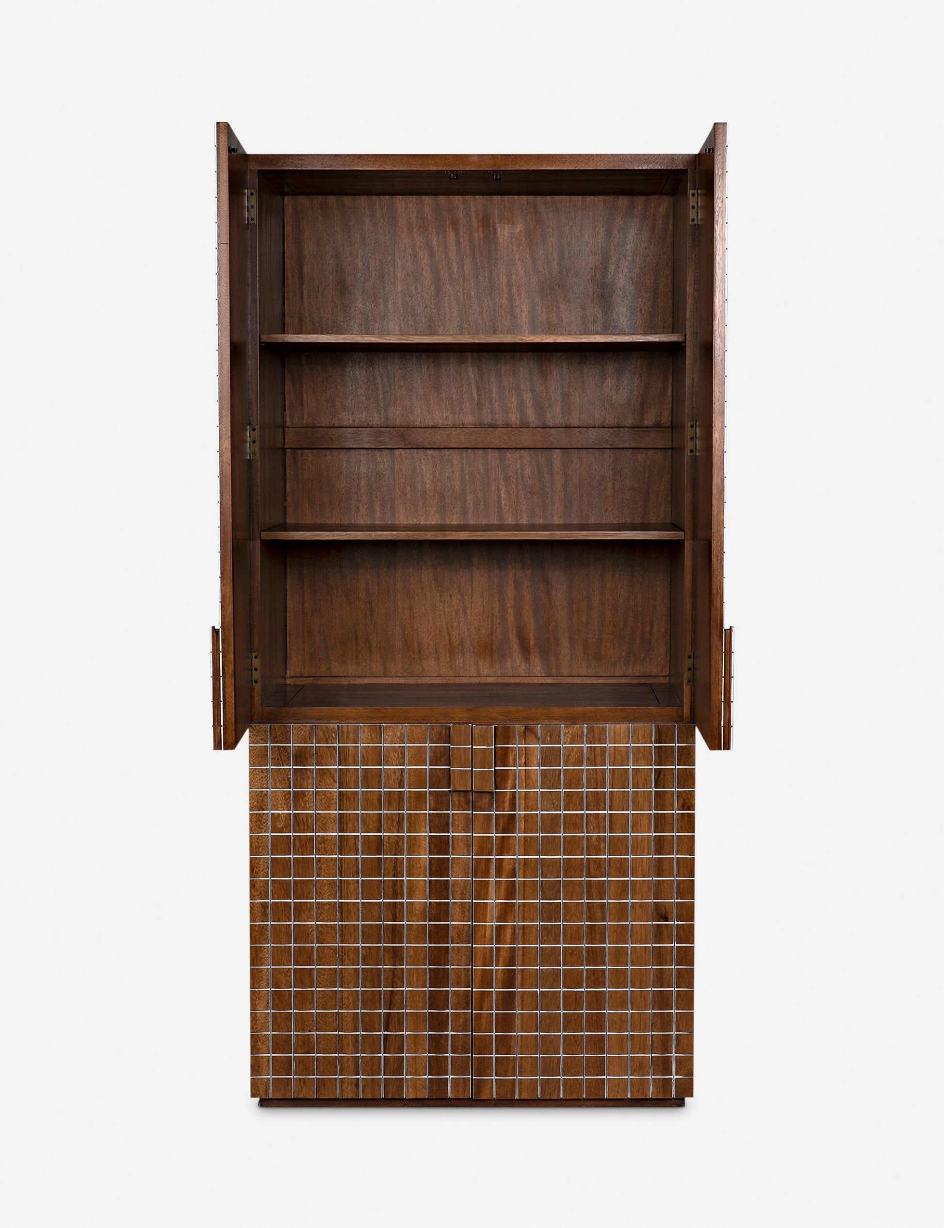 Avec ses motifs audacieux et sa finition soignée, l'armoire Wessler est un élément central moderne de tout espace. Le noyer sculpté à la main crée une grille saisissante sur son cadre haut, apportant texture et profondeur à sa silhouette épurée. Cette armoire spacieuse offre de nombreux rangements fermés pour un style épuré.